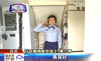 在行政专机队上,笑容亲切的“空服士”用甜美的笑容行“举手礼”,她们服务的对象就是台湾的高级行政首长,或是台军的各级长官。