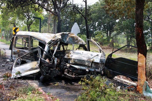 一辆隶属于台湾陆军十军团的9人座厢型车,19日上午行经“台一线”公路南下官田路段时,疑似失控撞上路树后起火燃烧。台南市消防局在11时38分接获报案,赶到现场后,车子已经陷入火海中,车内一名男子被夹住,逃生不及,待火势扑灭时已成焦尸。