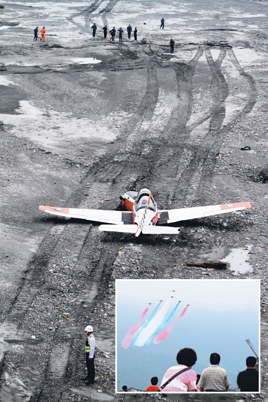 昨天上午11时,由台军上校教官赖纹由(45岁)与少尉学员陈厚郡(23岁)驾驶编号343的T-34C教练机,从台空军军官学校起飞进行例行训练。11时16分,赖纹由即向冈山塔台回报:“发动机故障熄火!”
