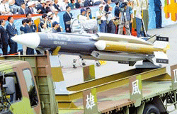 台军研发的最新武器“雄风三型超音速攻舰飞弹”,在6月份的试射过程中脱靶凸槌。图片来源:台湾《中国时报》