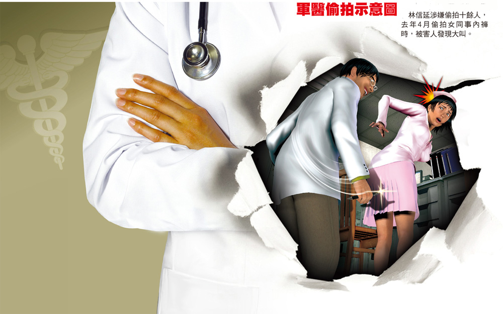 中国台湾网3月12日消息 据台湾媒体报道,台军冈山医院少校医官林信延被爆料长期偷拍女性裤底,已遭发现还继续疯狂偷拍,院内护士等10多人受害,但院方总以证据不足为由搪塞,直到去年4月,林被同事逮个正着并搜出针孔笔等证物后,院方才终于处理,但却只是将他列为行为偏差,甚至还将他调离担任航训官,1年多领数10万新台币补助。
