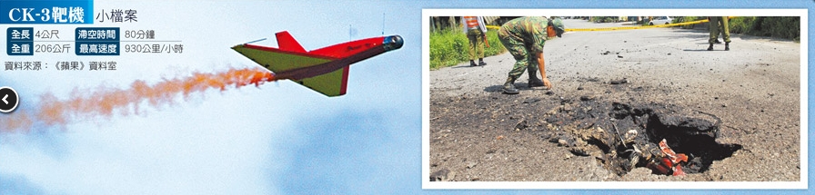CK-3靶机 军演靶机坠落台东大武乡间公路上,砸出一个大洞。