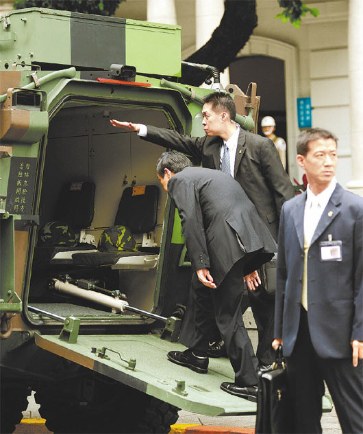马英九进入“云豹”装甲车 (图片来源:台湾《联合报》)