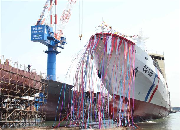 继第一艘3000吨级的巡防救难舰“宜兰舰”(CG-128)后,编号(CG-129)的同级舰“高雄舰”,也在高雄旗津中信造船厂举行下水典礼。