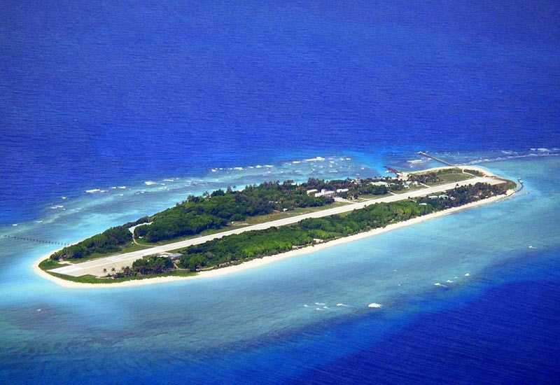 台湾“海巡署副署长”郑樟雄8日上午表示,南海太平岛新建码头明年应可完成施工,目前正在评估、观测码头所承受的西南涌流,若码头撑得住,未来不排除部署3000吨级巡防救难舰。图为太平岛俯瞰全貌。(网络图)