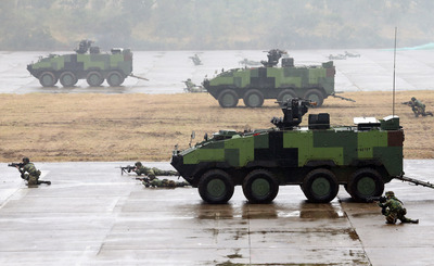 台军2015年春节加强战备,陆军27日在新竹湖口营区演练,出动CM11战车、CM32甲车、特战人员等兵力,展现协同作战能力。图片来源:台湾“中央社”