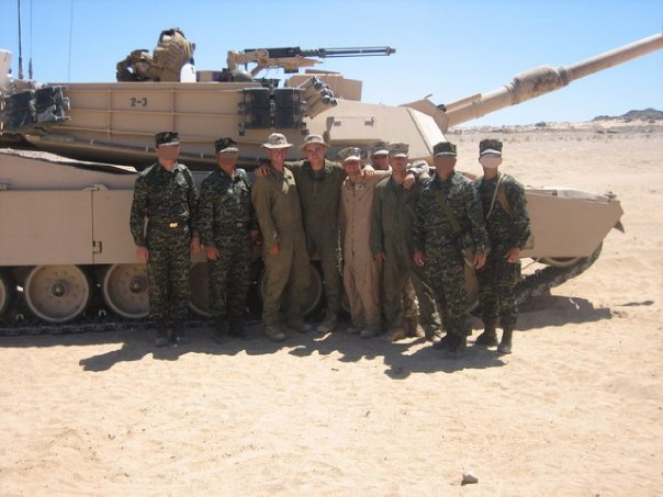 近日,台湾秘密赴美的26人侦搜排与美军训练合影的照片在网络上曝光,从背景中可以看到美军的M1A1主战坦克和MV-22鱼鹰运输机。