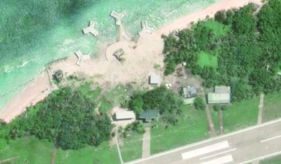 据台湾今日新闻网站报道,卫星照片显示,位于太平岛西北侧海岸出现一处由4个巨型三爪结构,以半月形包围组合而成的临海阵地(图上红圈处)。从空中俯瞰,这4个三爪型结构看起来像是一种保护海岸的消波块,但它们的体积实在太庞大,仅一个结构体就比岛上40毫米速射炮阵地的工事还要大上五六倍。尽管台湾防务与海巡部门均以机密为由不对外公布,但美国《纽约时报》随后披露,台方已要求“谷歌地球”将相关卫星照片加以模糊处理,因此这些设施很可能是军事用途。今日新闻网站称,根据台湾“国防部”近期发布“南沙营区设施工程”采购案显示,台湾“中科院”正在太平岛埋设“L-波段信号电缆”,并建设供电机房。由于台军现役L波段雷达通常是指美制AN/TPS-117机动远程预警雷达,最大探测范围超过300公里,因此太平岛上的神秘设备很可能与这种远程雷达有关。