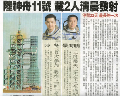 18日,香港多份报章均以大篇幅报道神舟十一号成功升空,相关的消息、特写、花絮等占据多个版面。