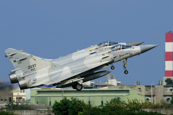 陈金龙是台空军首位幻影战机飞行员,图为台湾空军幻影2000-5双机编队起飞。(图片来源:人民网)