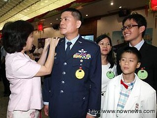倍感荣耀的家属,为陈金龙挂上将星。(图片来源:台湾“今日新闻”)