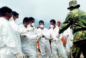 台当局“卫生署长”杨志良说,当灾民们看到志工及台军官兵都戴上口罩时,或许心里会觉得怪怪的,但还请大家见谅,因为这也是为了保护灾民。由于甲型H1N1流感好发于年轻人,戴上口罩,这也让救灾的年轻士兵多了一层保障。