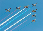 台空军部队进行校阅兵力预演空中分列式,分成五梯次通过松山机场上空,第五波由AT-3喷射教练机列队通过。这项全兵力预校上午10时许在松山机场举行,由台湾空军司令严明亲自检阅。