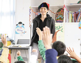 周美青昨天在为月眉小学童说故事时,偶尔还会请小朋友当小帮手,帮忙搬道具或接着讲故事,也随时给小朋友鼓励。有小朋友天真地问周美青,“周阿姨你为何那么喜欢帮助人?”她以和蔼语气回答:“每个人都有助人的天性呀。”