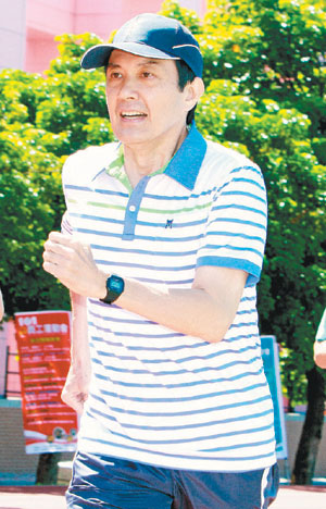 一项健检资料分析结果显示,多运动可让“健康年龄”比实际年龄年轻10岁。几乎每天跑步运动的马英九(右),在医师看来“健康年龄”比实际年龄年轻近10岁。图片来源:东南网