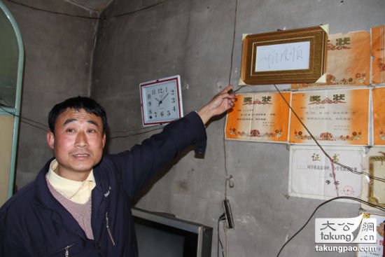 香港《大公报》发布的这则虚假新闻称,家住北京远郊平谷区的“的哥”郭立新,今年46岁,开出租车已经有8年了。时间过去了一个多月,但一提起今年3月1日晚上那次8.2公里、26分钟的载客奇遇,他仍然是激动不已,因为习近平乘坐了他的出租车。图为“的哥”郭立新在自家门口向记者展示他所称习总为他提写的“一帆风顺”原件。大公网记者王文韬摄