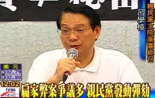 亲民党“立法院”党团总召集人吕学樟表示,“弹劾案”已经拟定好,亲民党将尽快邀请“立委”联署,以便让它成案。吕学樟指出,“对贪污腐败的陈水扁,如果不提出弹劾案,我们是失职的。”