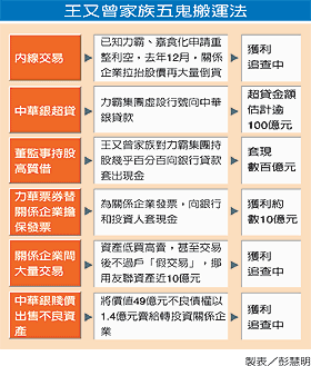 台湾检调单位约谈中华商银太原路分行、三重分行经办5人,调查分行放贷要求购买力霸公司债过程,台检方查出,太原路分行以此手法放贷8亿6千万元,怀疑中华商银亦指示三重分行从事这种方法放贷。