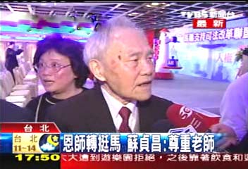 吕秀莲、张俊雄、苏贞昌的老师姚瑞光,表态支持马英九(图片来源:TVBS)