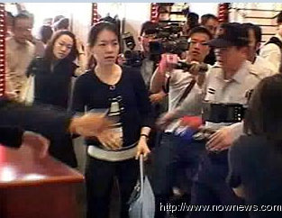 陈幸妤发飙大吼,指责媒体摄影机打到头。(台湾TVBS)