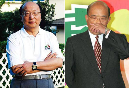 胡志强(左)不想选台北县长,只想跟苏贞昌(右)比谁头发多。