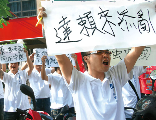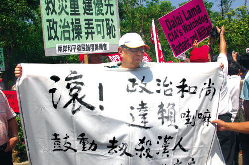 9月2日,在达赖居住的饭店外的台湾抗议民众