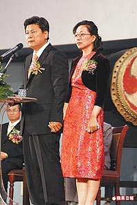 花莲县长傅昆萁20日公开宣布妻子徐榛蔚出任副县长,成为全台最劲爆的就职典礼。来源:台湾《苹果日报》