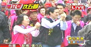 国民党主帅亲征,今天从台东开始,中午接着到台中,晚上桃园扫街,最后在桃园有场造势晚会,要全力拉抬选情。(陈佳慧)