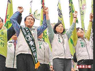 蔡英文(右2)昨到中坜市,为“立委”补选参选人黄仁杼成立竞选总部站台。图片来源:台湾《苹果日报》