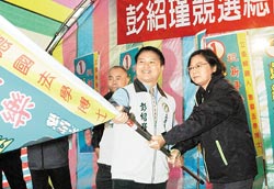 民进党候选人彭绍瑾溪南竞选总部昨日成立,蔡英文站台助势并授旗。(图:台湾《中国时报》)
