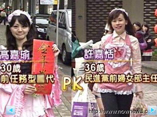 据了解,30岁的高嘉瑜曾经是任务型民代,36岁的许嘉恬是民进党前妇女部主任,想在台北市南港内湖区抢下仅1席的妇女保障名额,两人都绞尽脑汁争取曝光机会,也在同一天公开造势,女仆装下的激烈政治对决不言而喻。(王赛赛)
