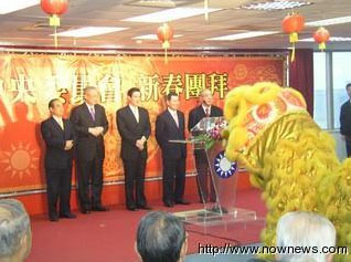 国民党团拜不仅请来祥狮献瑞,马英九、吴伯雄还特别致词祝贺全体国民党党员新春快乐。 来源:台湾“今日新闻网”