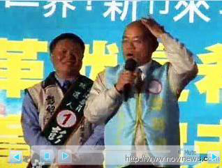 据台湾“今日新闻网”报道,民进党主席蔡英文、台当局前“行政院长”谢长廷、苏贞昌等人,昨日晚间先后在新竹县竹东镇中兴河道广场,为彭绍瑾站台造势。“电火球”苏贞昌一上台锐不可挡,讲得口沫横飞,但他的竞选背心竟没有号码,上头的字也让人看不懂,看起来很奇怪。经主持人提醒,苏贞昌才发现,原来竞选背心穿反了,只好当众更衣,口中不断说抱歉。