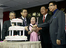 海基会19周年庆典,江丙坤、辜严倬云等切蛋糕。(图:台湾《中央日报网络版》)