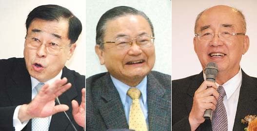 吴伯雄(右起)、詹春柏、廖了以都有心血管问题,是“心疼俱乐部”的成员。 来源:台湾《联合报》