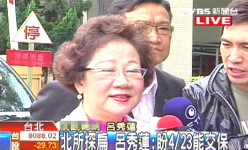 吕秀莲赴台北看守所探视陈水扁。 来源:台湾TVBS电视台