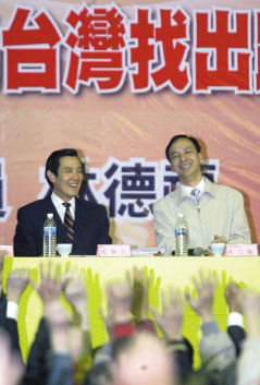 据台湾《联合报》报道, 马英九昨天率台当局“行政院副院长”朱立伦、“经济部长”施颜祥、“陆委会副主委”赵建民等人出席由国民党民代林德福主办的座谈会,现场来了约两千人,把秀朗小学大礼堂挤得满满的。