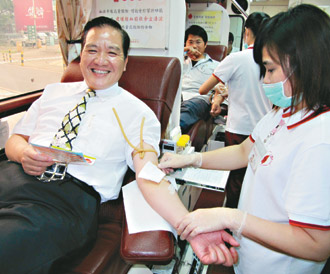中国台湾网5月6日消息 据台湾《联合报》报道,台湾新竹捐血中心昨天在国宾饭店表扬快乐捐血族和热心募血团体,新竹市长许明财开心地打破自己的捐血纪录,达到102次;桃园、新竹、苗栗地区首位捐血逾千次的是姚文雄,还有对捐血姊弟档刘嘉惠和刘家郎。