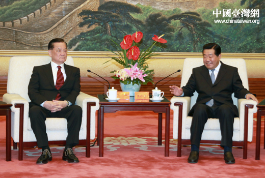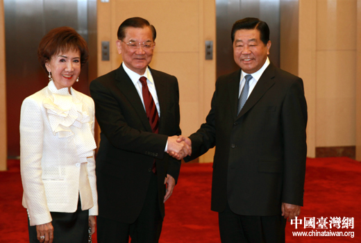 5月7日下午,中共中央政治局常委、全国政协主席贾庆林在北京人民大会堂会见了前来大陆参访的中国国民党荣誉主席连战一行。(中国台湾网 田云鹏 摄)