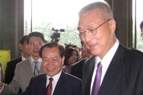 吴敦义(右)与“法务部长”曾勇夫(左)出席“历史印记──百件珍贵狱政档案展”开幕典礼。(中评社邹巧韵摄)