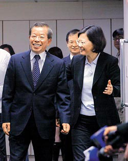 陈水扁当局前“行政院长”谢长廷(中)与民进党主席蔡英文(右)图片来源:台湾《中国时报》