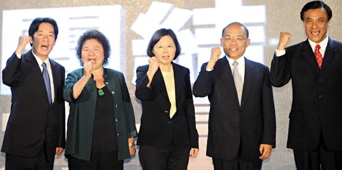 左起依次为赖清德、陈菊、蔡英文、苏贞昌、苏嘉全。图片来源:台湾《联合报》