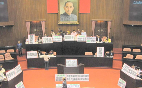 台“立法院”本会期将尽,国民党团占领主席台,盼顺利开会,避免议事停摆。