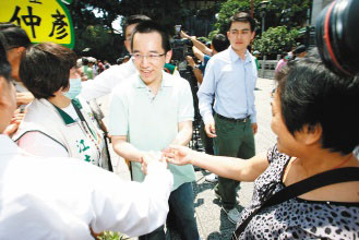 综合台湾媒体报道,陈水扁之子陈致中7日北上台北,陪同民进党台北市议员参选人童仲彦在万华艋舺一带扫街拜票,虽然扁家最近汇回1亿多新台币,但对于11日扁案二审宣判,阿扁能否交保,陈致中也无把握,连说了三次“希望父亲早日回家团圆”。此外,陈致中还于一早去龙山寺上香祈福。