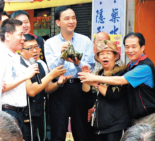 朱立伦参加残障人士团体端午包粽活动,受到热烈欢迎。(图:台湾《联合报》)