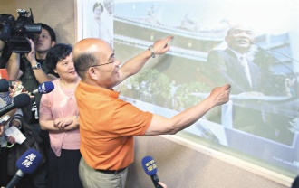 苏贞昌昨天首度开放酷炫的竞选办公室,大门一推开,就看见一片屏幕墙,比照高科技,苏贞昌可以手控方式“玩照片”,只要手一碰,屏幕就会显示市民意见。
