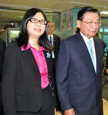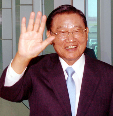 台湾海基会董事长江丙坤(右)率代表团于28日8时30分许由桃园机场乘机飞往重庆,将与海协会会长陈云林举行两会恢复制度化协商后的第五次领导人会谈。