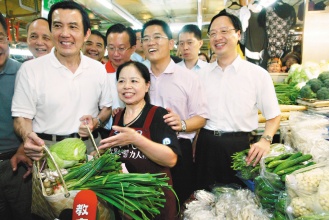 中国台湾网7月5日消息 据台湾《联合报》报道,马英九昨天到台东市拜访“爱心摊贩”陈树菊,向陈树菊买了两万元新台币的菜,送给原国民党军队老兵家庭。