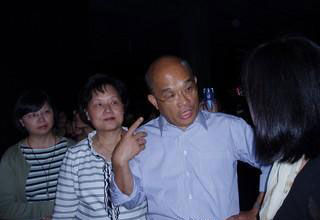 据台湾“今日新闻”报道,民进党台北市长参选人苏贞昌5日上午与夫人詹秀龄一同参观高堤耶的舞台服装展,看到内衣外穿的马甲裙装系列,拉起老婆的手在耳边轻问“这件你敢穿吗?”结果引来全场竖耳听答案。
