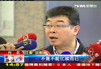 国民党“立委”邱毅调侃邱议莹,称“很多女性政治人物坐牢以后被狱友整得很惨,不是不能化妆而已,出来之后已经面目全非?”。 图片来源:台湾TVBS